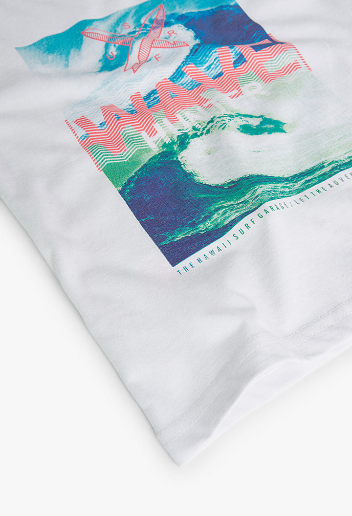 This is a sleeveless children's T-shirt, perfect for summer. It comes in a crisp white colour, suitable for both boys and girls. The sizes range from 2 months to 16 years. The shirt is made of knit fabric, ensuring comfort and durability. It features a round neck and strap sleeves, making it easy to wear. The shirt is decorated with a print, adding a fun element to the design. Ideal for warm weather, this T-shirt is a versatile addition to any child's wardrobe.