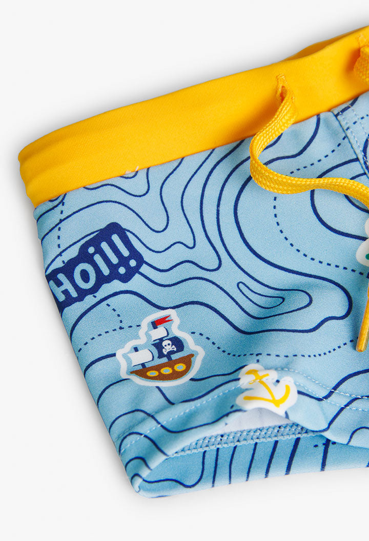 This is a baby boy's printed polyamide swimsuit, perfect for summer. It comes in a vibrant yellow colour that stands out. The swimsuit is available in sizes ranging from 6 months to 6 years. The fabric is knitted, ensuring comfort and durability. The decoration is a print, adding a fun element to the swimsuit. This piece is ideal for little boys who are ready to make a splash and enjoy the summer season. It's not just a swimsuit, it's a statement of joy and fun in the sun.