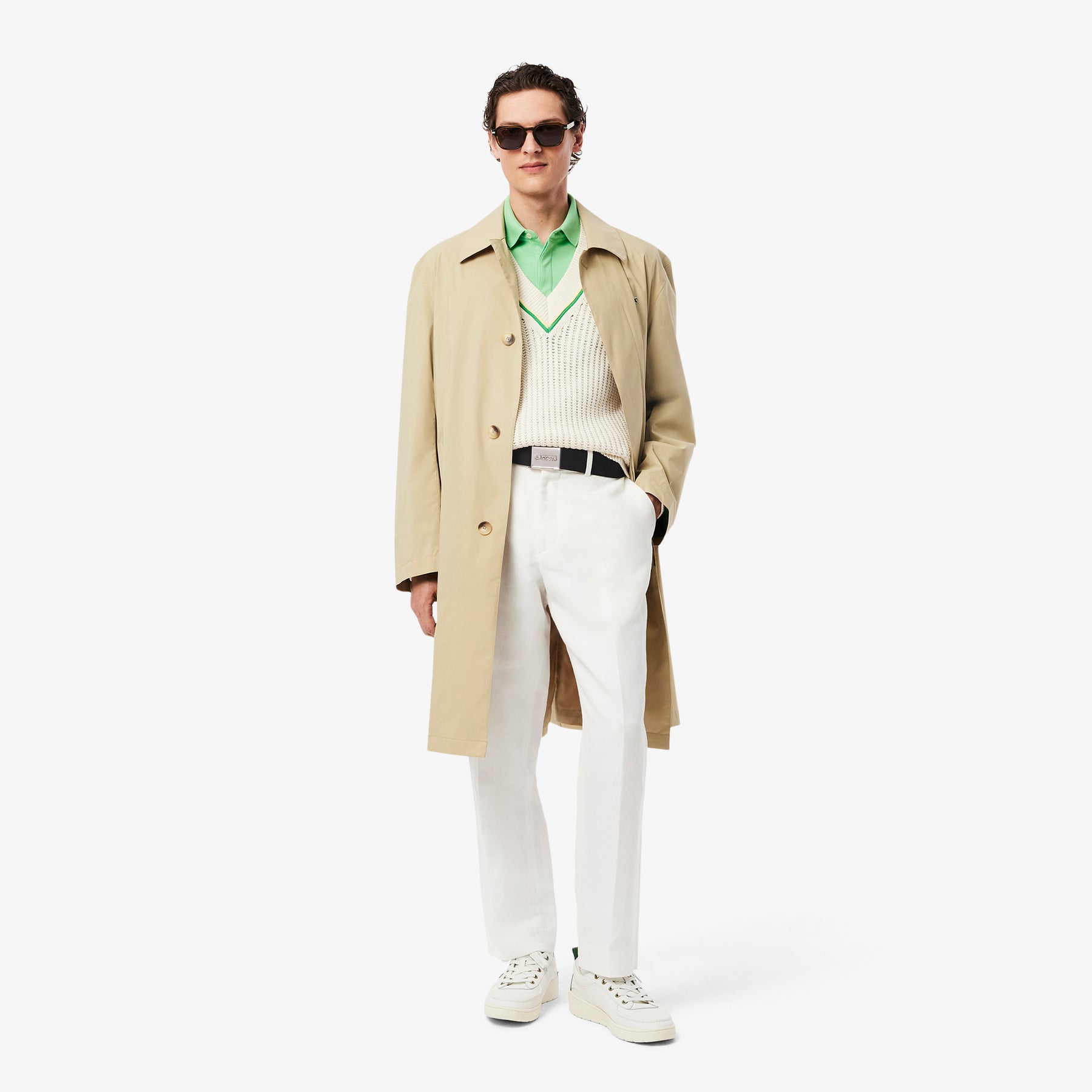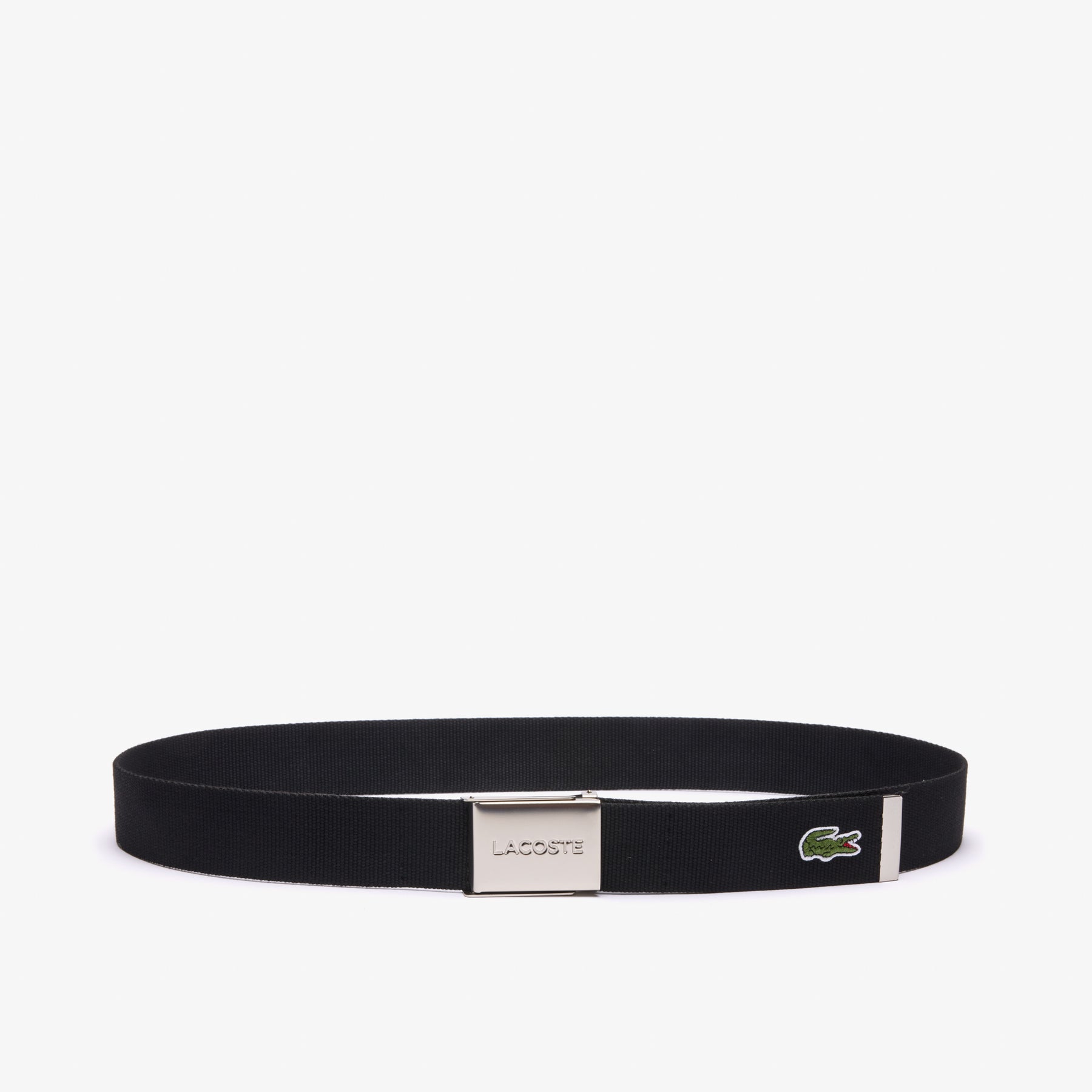Engraved Lacoste branding on buckle