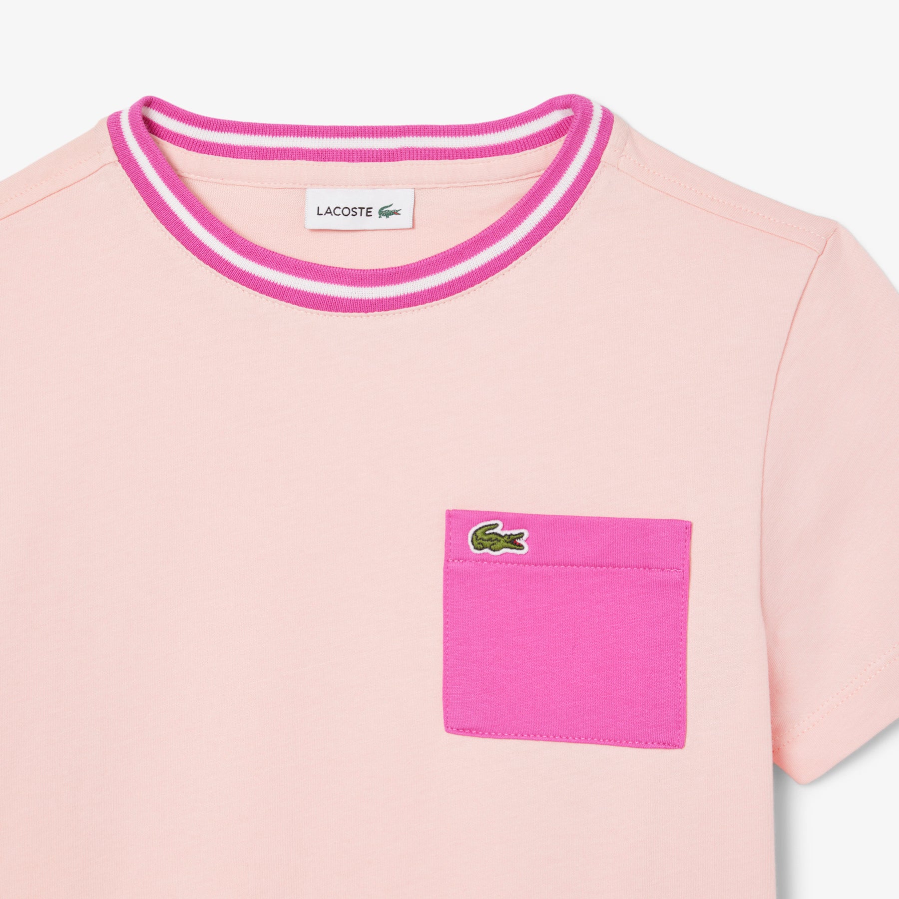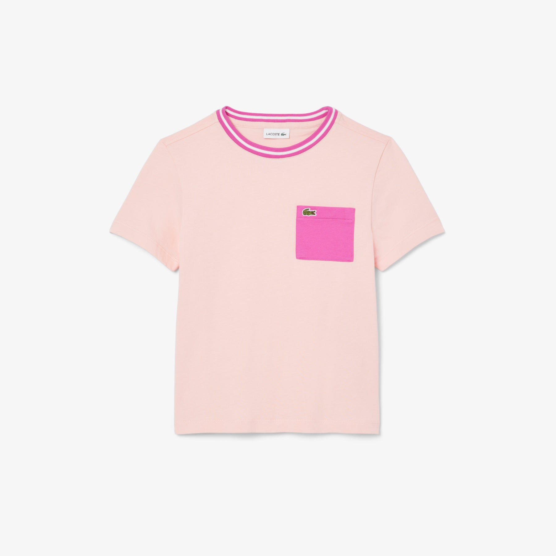 A timeless Lacoste style in soft cotton jersey with a striped collar and contrasting patch pocket. A new, premium basic for kids.