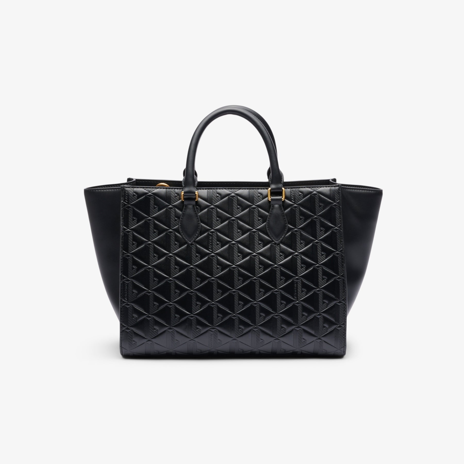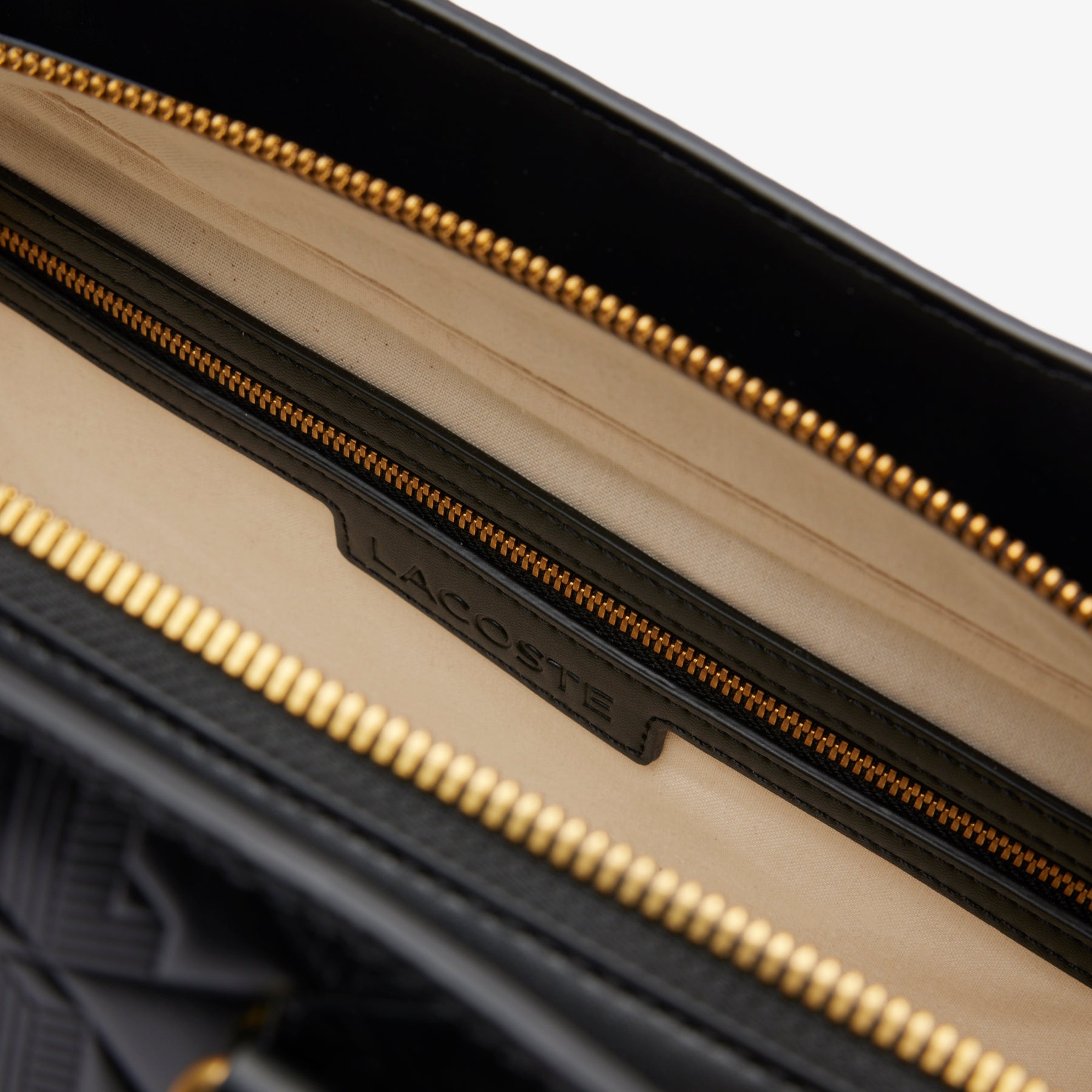 Ideal for work or a weekend, this large tote holds a billfold, keys, cell phone, vanity bag, and a 14” laptop, with an elegant urban design.