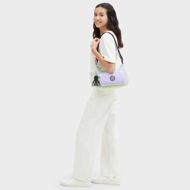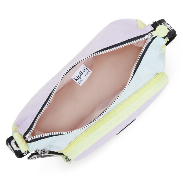 Zipped main compartment Zipped front pocket Zipped inside pocket Adjustable strap Kipling monkey keychain
