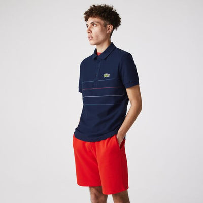 Organic nubbed cotton piqueOrganic cotton jersey polo collar with three rubber touch buttonsRegular fitOrganic cotton stripes and recycled polyesterOversized embroidered green crocodile on chest