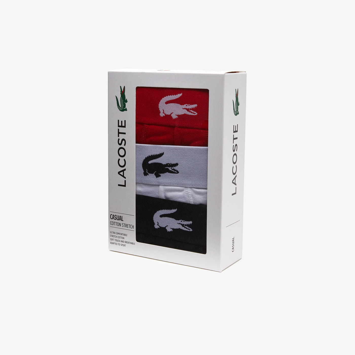 Crocodile and Lacoste branding on waistbands:
