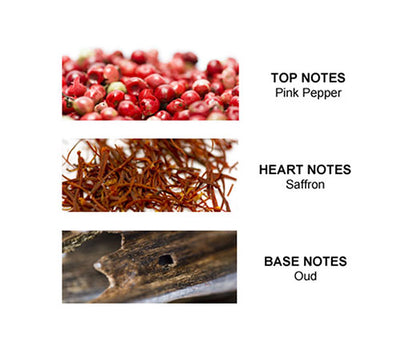 Refined and elegant, the fragrance starts off with a fizzy blend of Italian bergamot, pink pepper and cascalone. Enhanced by mysterious notes of violet leaves absolute, galbanum and saffron, the heart finally unveils a precious and intriguing combination of patchouli, vetiver, oud and amber gris. A fragrance with a luxurious and modern signature.