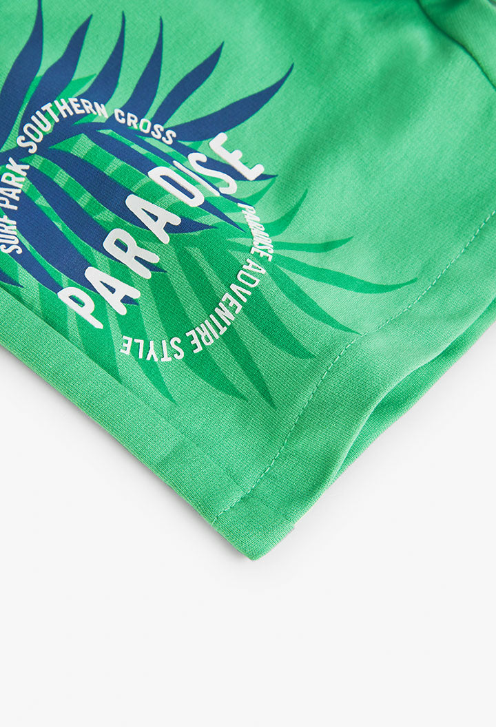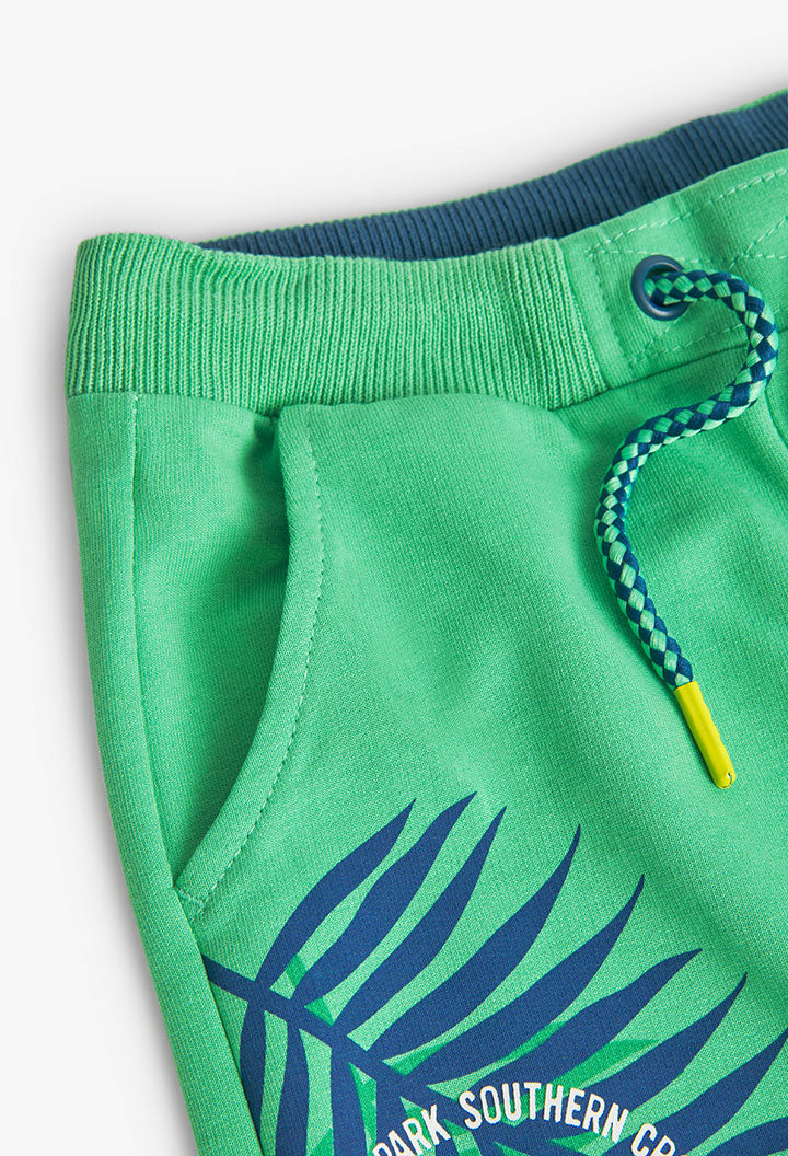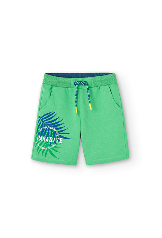 This is a child's Bermuda shorts in a vibrant green colour, perfect for summer. Made from soft, comfortable knit fabric, these shorts are designed with a fun print that adds a playful touch. They are available in sizes ranging from 4 months to 16 years, ensuring a good fit for children of various ages. These shorts are easy to care for and durable, making them a practical choice for everyday wear. Whether for a day at the park or a casual outing, these Bermuda shorts offer both style and comfort for your child.