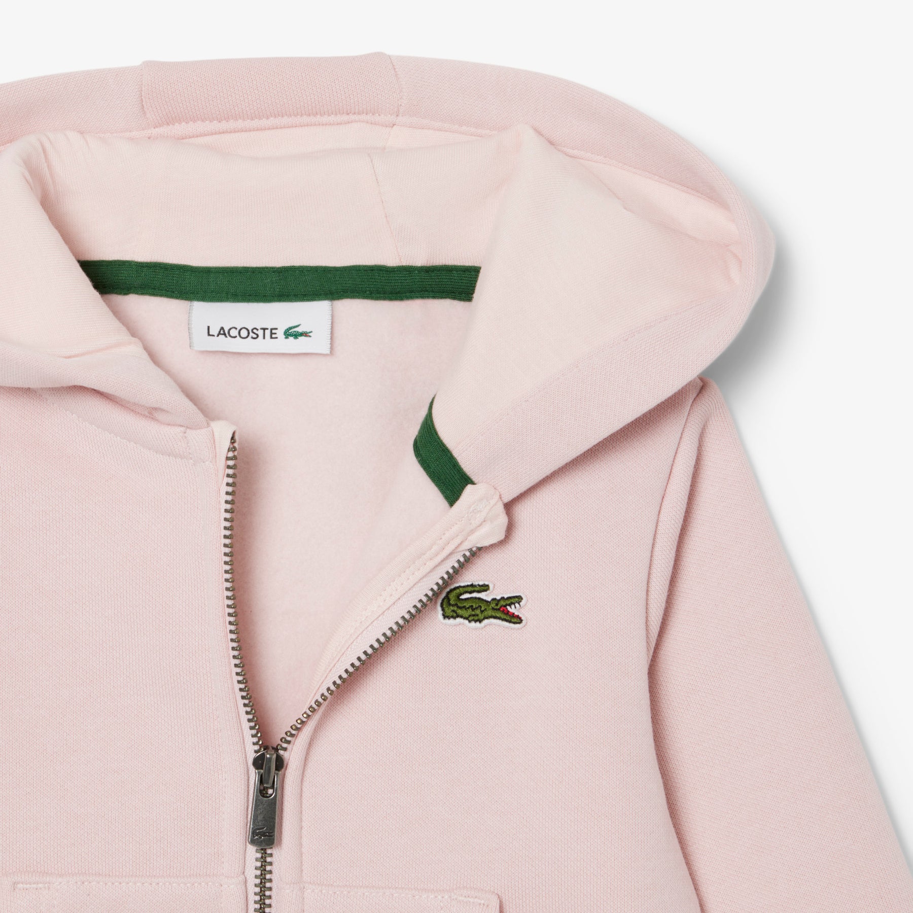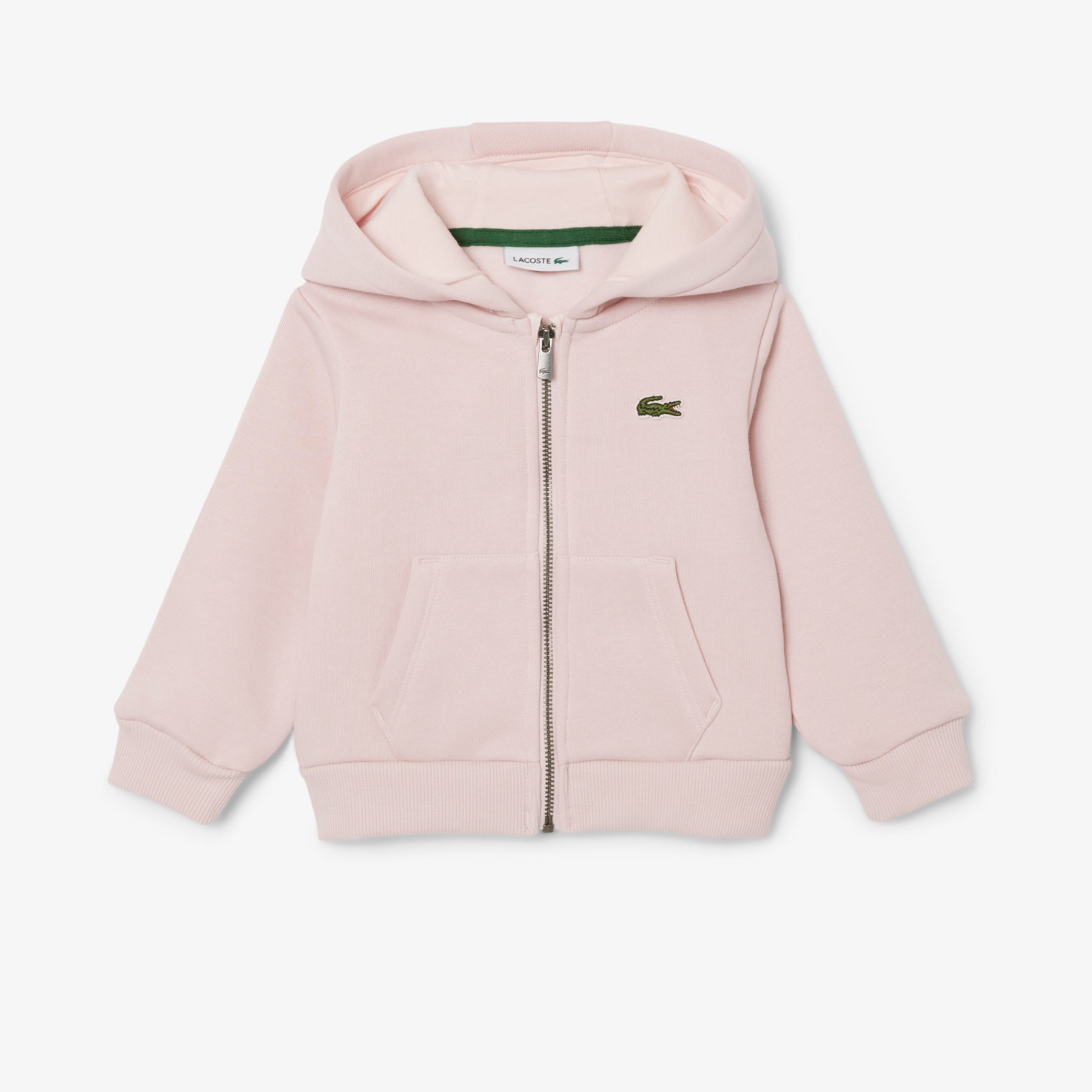 Three essential pieces in soft cotton fleece for comfort and warmth, featuring elegant branding details. Perfect for infants.