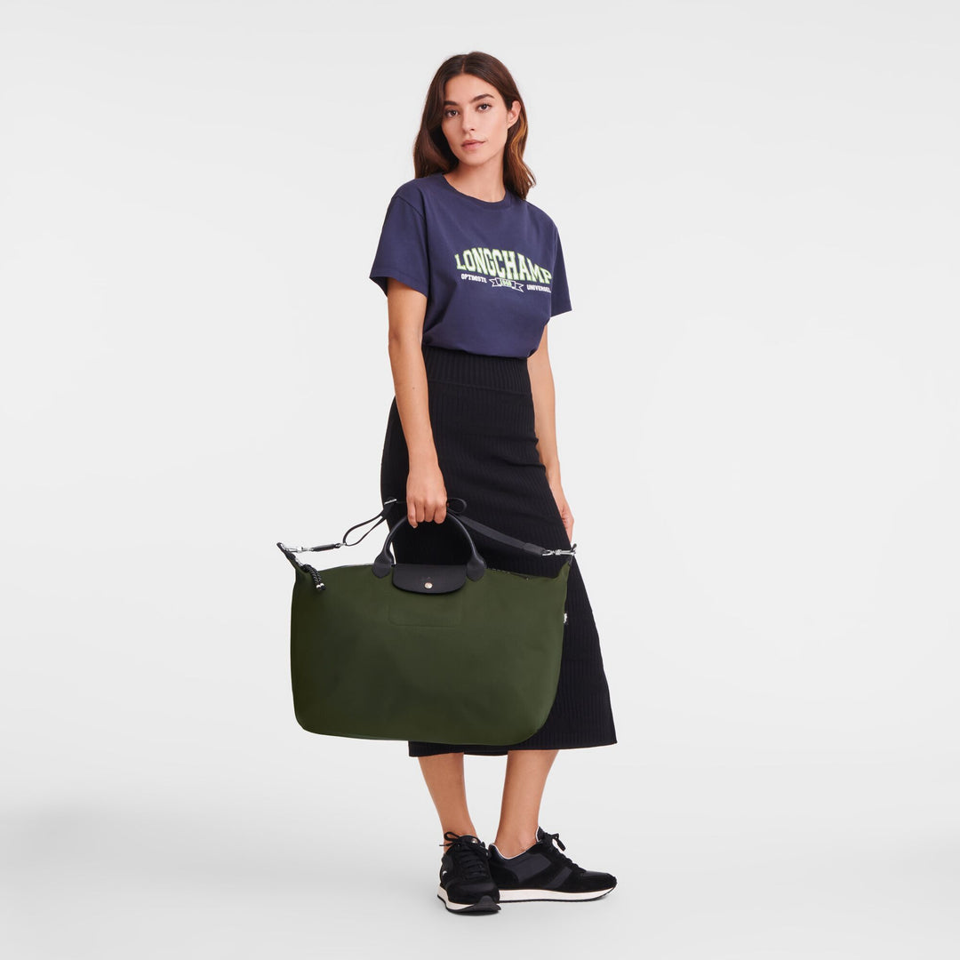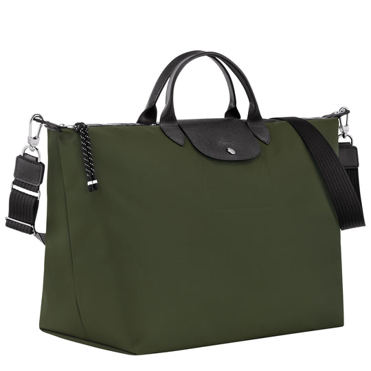 This large travel bag features an adjustable shoulder strap so you can carry it on your shoulder or in your hand. Subtle, refined design with a zipper closure, it keeps all of your personal belongings protected.