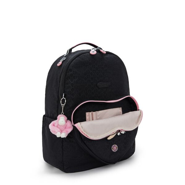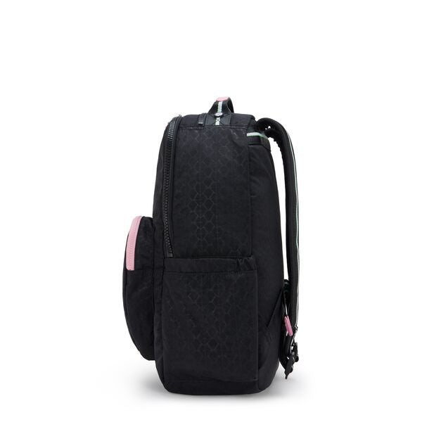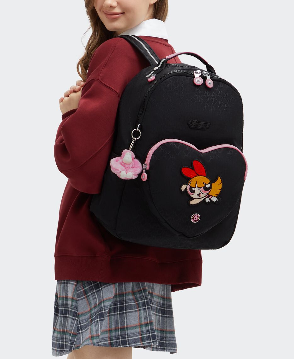 Get ready to embrace your limitless potential with this super-powered sister trio! This collection is sugar, spice, and everything nice! Find Kipling’s embossed signature “K” print, zinc hardware, silicone logos, and tonal monkey keychain on our iconic Seoul Backpack featuring Blossom. Top carry handle Laptop sleeve Two front zip pockets Water bottle pockets Adjustable, padded backpack straps Kipling Monkey keychain - The PowerPuff Girls Large Backpack