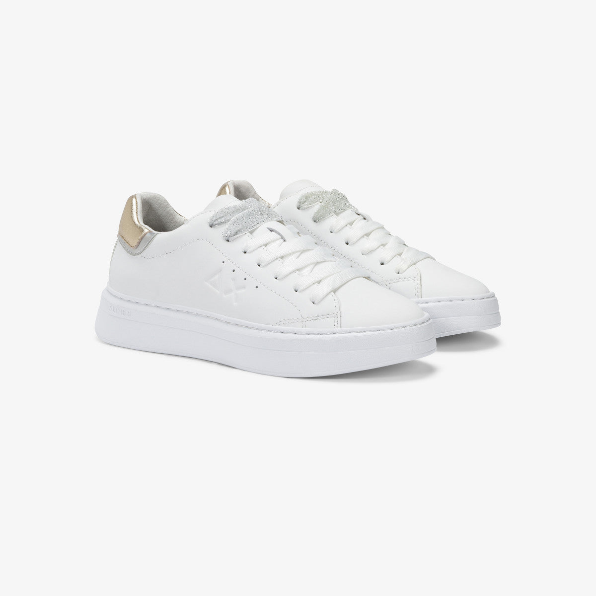 From sportswear classic to modern wardrobe must-have: our Grace sneaker flaunts a clean, compact design that lends itself to endless outfits. Made from ultra-soft leather, it fastens with lurex laces and is embellished with contrast details for a feminine twist.