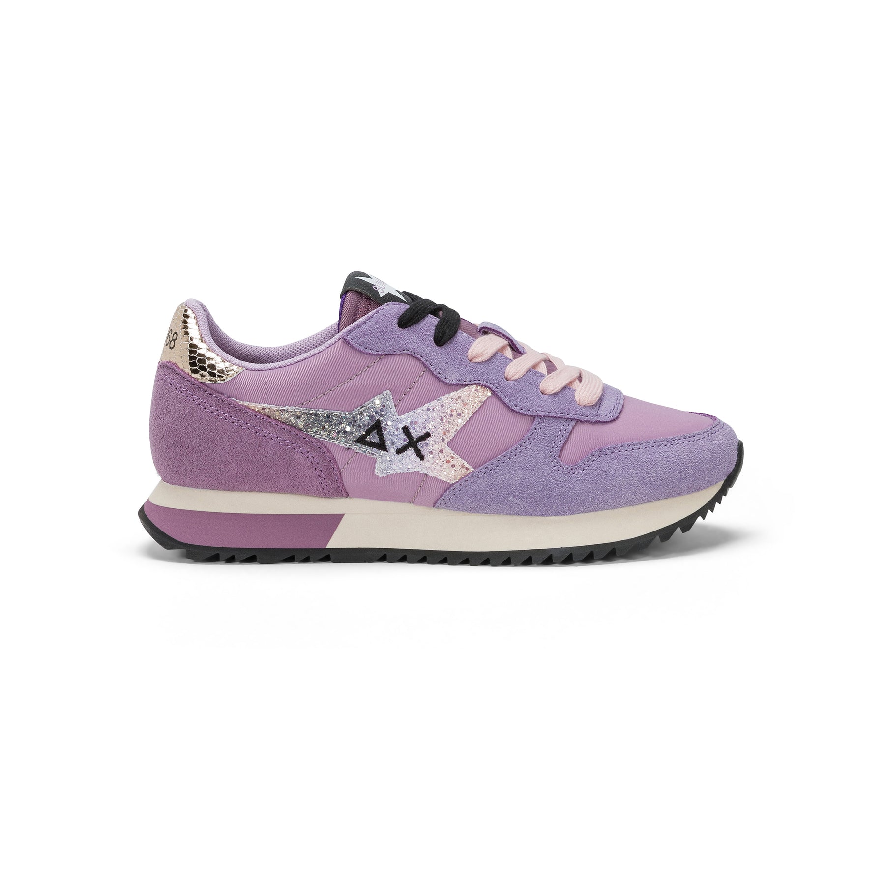 Innovative, lightweight and ultra-feminine, the SUN68 Stargirl Glitter sneaker is here to illuminate everyday looks. Embellished with a glittery patch on the side with a modern take on our iconic logo, and a snake-effect spoiler on the back.